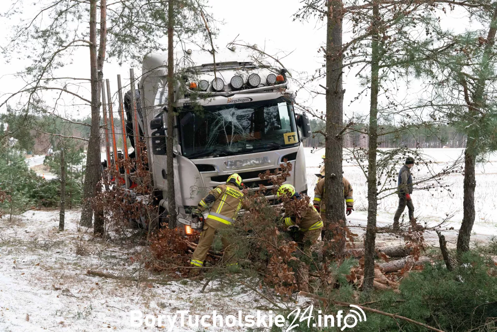 W piątek 3 stycznia przed godziną 14:00 do niebezpiecznego zdarzenia doszło na drodze Trzebciny - Zdroje, gdzie ciężarówka marki Scania wpadła w poślizg i wypadła z drogi.