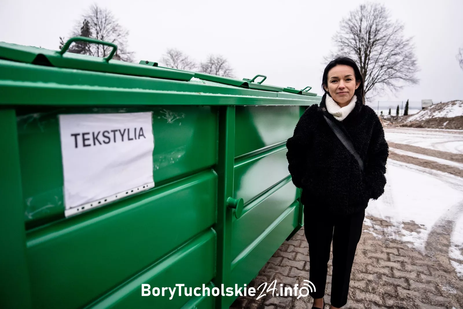 W PSZOK w Śliwicach ustawiono nowy kontener na tekstylia. Na zdjęciu dyrektor ZUK-u Ewa Łobocka.
