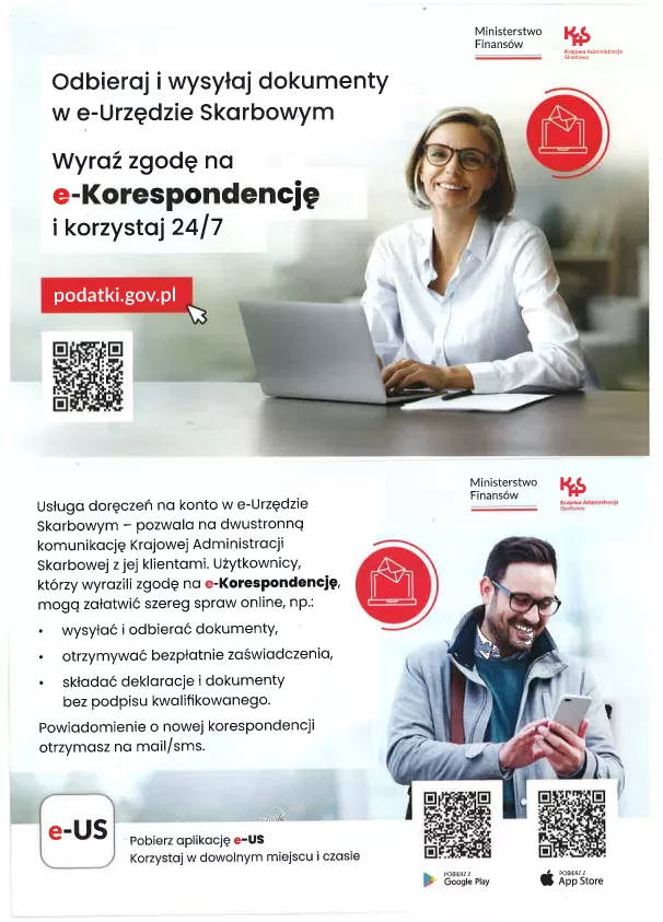 Urząd skarbowy zachęca do wysyłania dokumentów w e-Urzędzie Skarbowym.