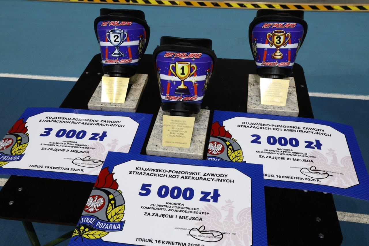 Zespół strażaków z Komendy Powiatowej Państwowej Straży Pożarnej w Tucholi zajął drugie miejsce w Kujawsko-Pomorskich Zawodach Strażackich Rot Asekuracyjnych, które odbyły się dziś (16.04) w Toruniu.