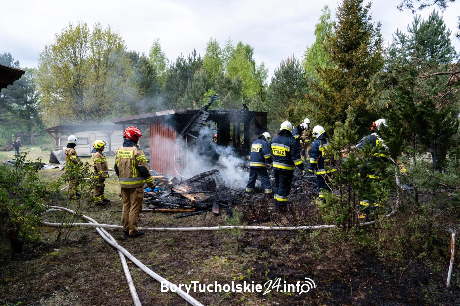 Pożar domku był na tyle poważny, że budynku nie udało się uratować. Strażacy zajęli się gaszeniem ognia. Akcja była bardzo niebezpieczna, bo wewnątrz znajdowały się dwie butle z gazem, które na zewnątrz wyniósł jeden z druhów. Pożar został ugaszony, a budynek rozebrany. Choć, jak ustalono na miejscu, właściciela nie było, strażacy wszystko dokładnie sprawdzili. – Musimy mieć pewność, że w środku nie ma osób poszkodowanych – mówił oficer prasowy Komendy Powiatowej Państwowej Straży Pożarnej w Tucholi Grzegorz Polok.