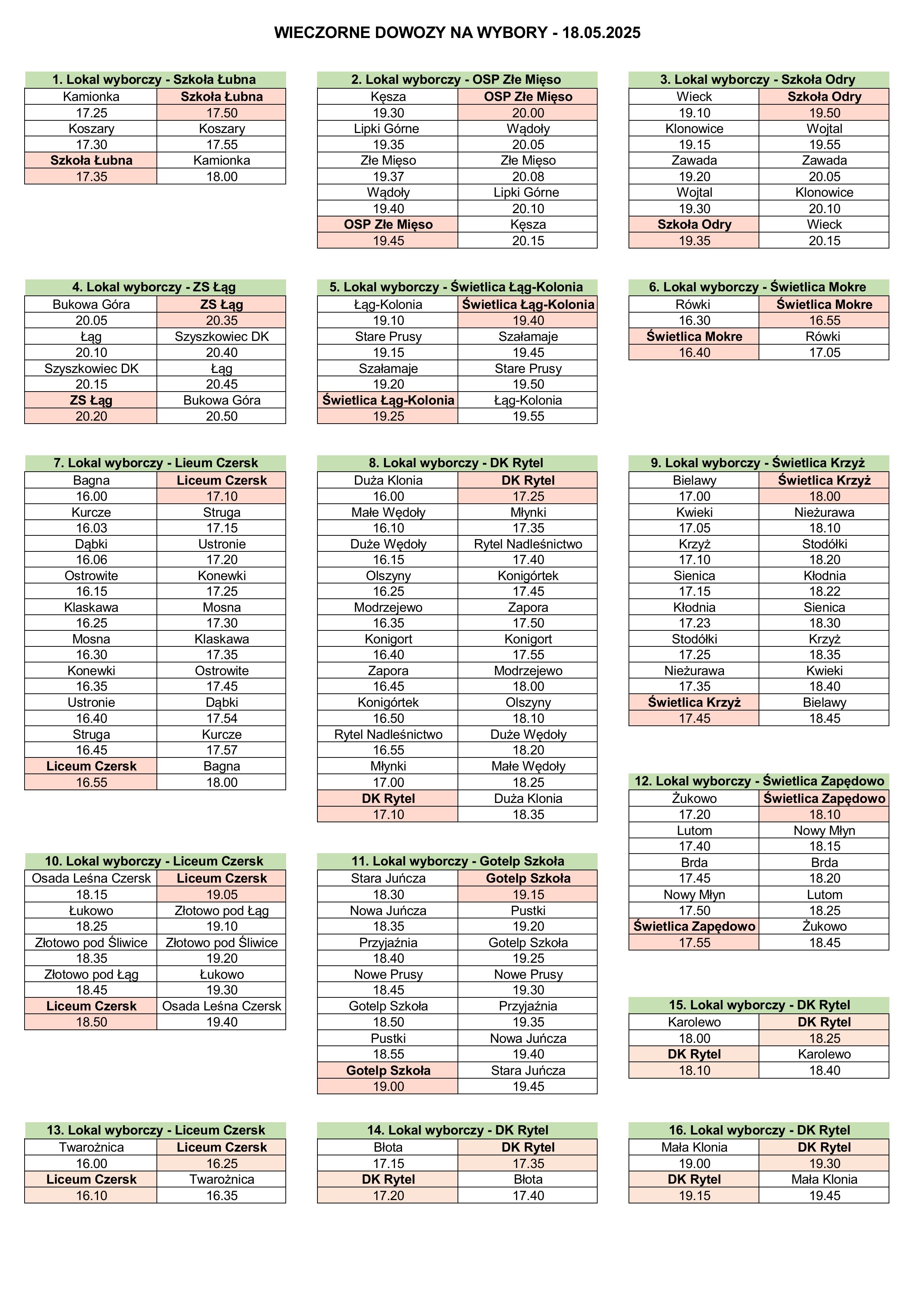 Dowozy będą realizowane zarówno w godzinach porannych, jak i wieczornych, by ułatwić mieszkańcom dotarcie do lokali wyborczych oraz powrót do domów po oddaniu głosu.