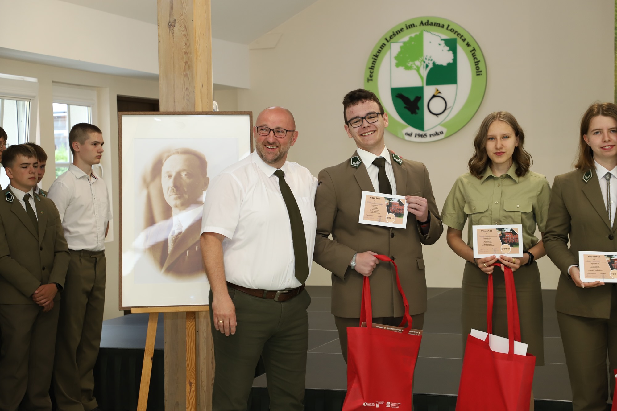 Nagrodę w konkursie wręczył dyrektor Technikum Leśnego Piotr Marciniak.