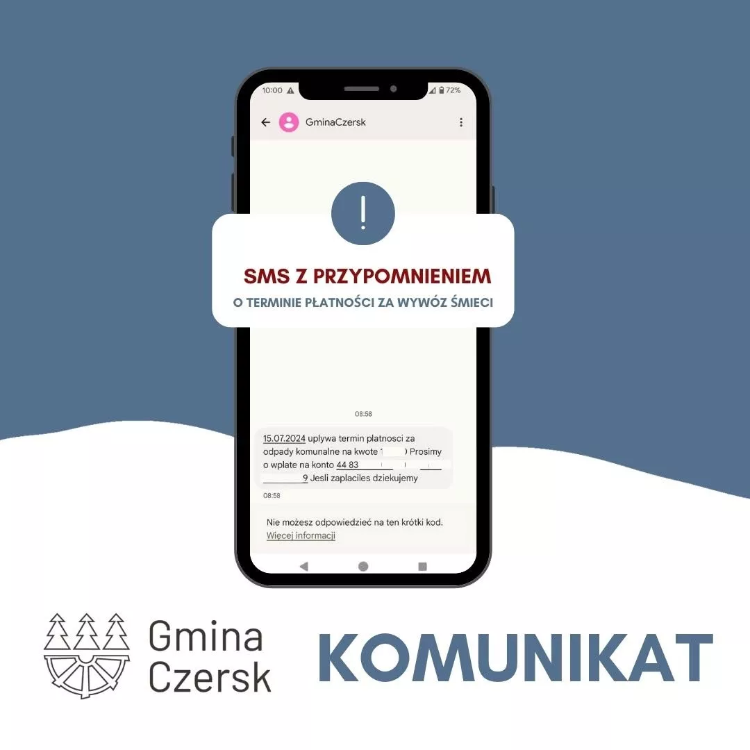 Urząd Miejski w Czersku zachęca mieszkańców do zapisania się na bezpłatne powiadomienia SMS, które przypominają o zbliżającym się terminie płatności za wywóz śmieci. Przypomnienia wysyłane są kilka dni przed 15. dniem każdego miesiąca – terminem, do którego należy uiścić opłatę za miesiąc poprzedni.