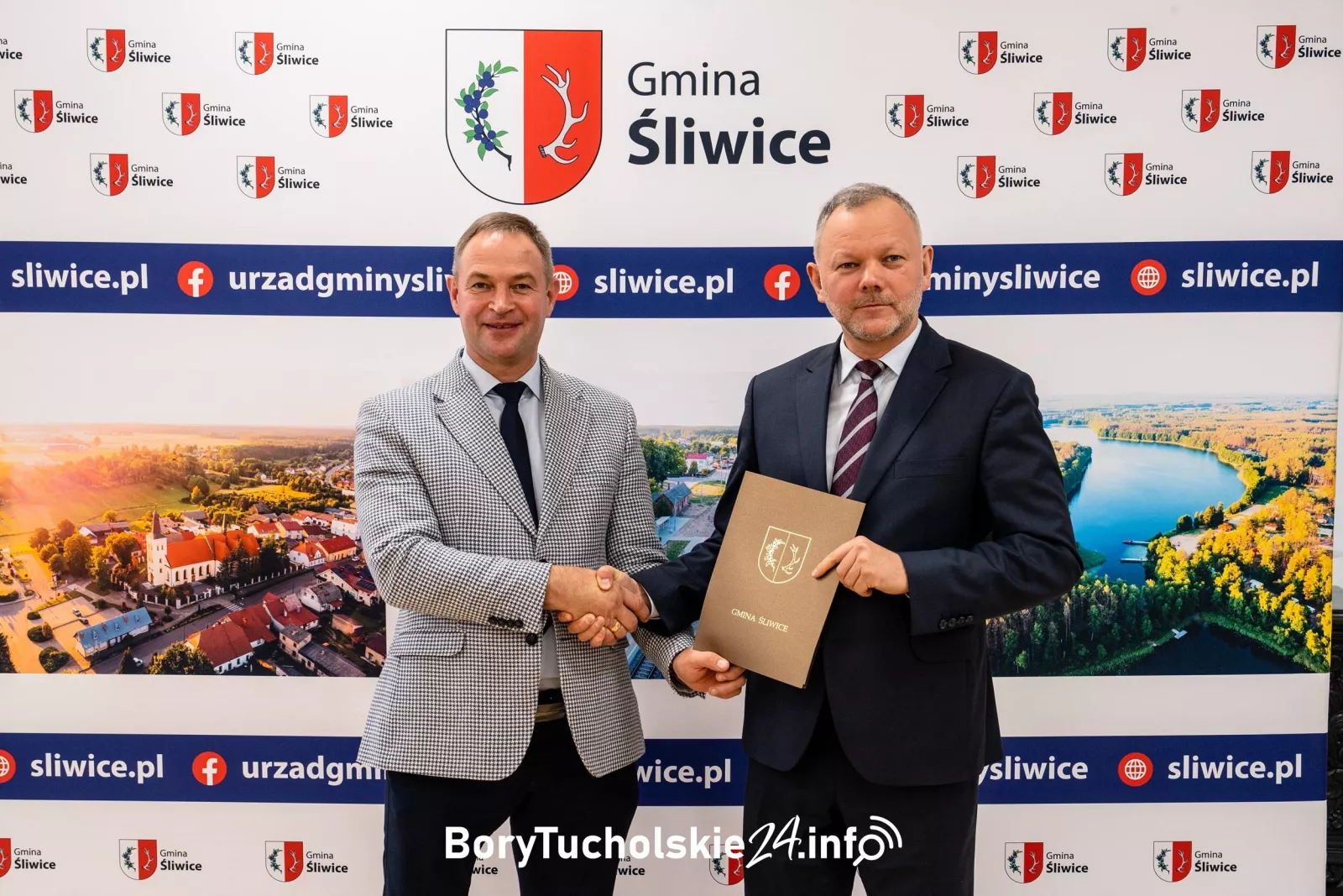 Wójt gminy Śliwice Daniel Kożuch i burmistrz Czarnej Wody Arkadiusz Gliniecki.