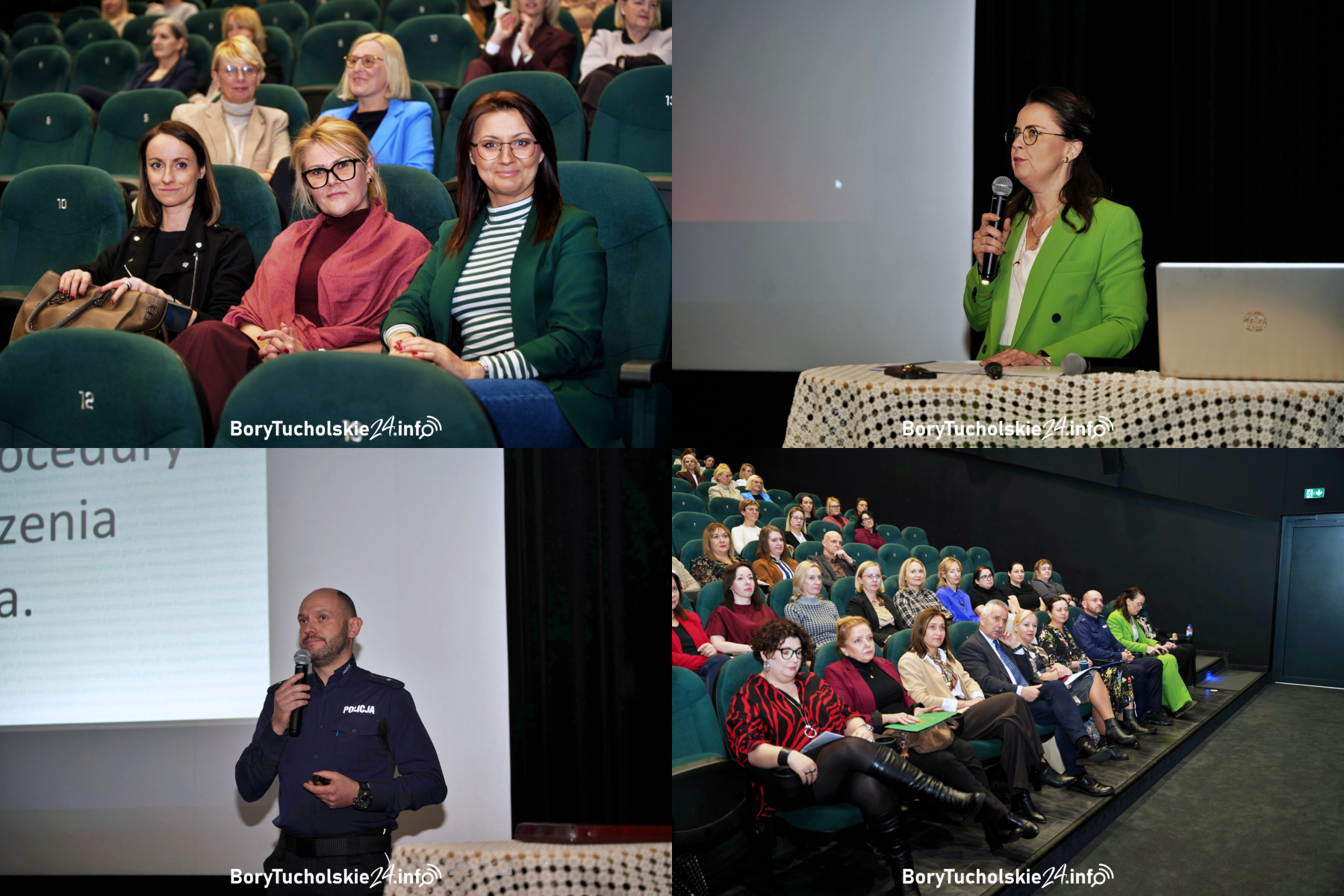 Zastosowanie art. 12a ustawy o przeciwdziałaniu przemocy domowej – Justyna Porębska, zastępca przewodniczącego Zespołu Interdyscyplinarnego w gminie Tuchola, oraz Tomasz Gac z Komendy Powiatowej Policji w Tucholi przedstawili dobre praktyki i procedury dotyczące zabezpieczenia dziecka w sytuacji zagrożenia jego zdrowia lub życia. Dzieci w rodzinach dotkniętych przemocą domową – o doświadczeniach Specjalistycznego Ośrodka Wsparcia mówiła jego dyrektor, Kinga Cisewska-Kawczyńska. Problemy i rozwiązania dotyczące dzieci przebywających w pieczy zastępczej – temat przedstawiły Kinga Czapiewska oraz Katarzyna Kotowska z Powiatowego Centrum Pomocy Rodzinie w Tucholi. Zjawisko przemocy z perspektywy dziecka – prelekcję przygotowały psycholog OPS Irmina Kaczyńska oraz Małgorzata Kożuch, starszy asystent rodziny.
