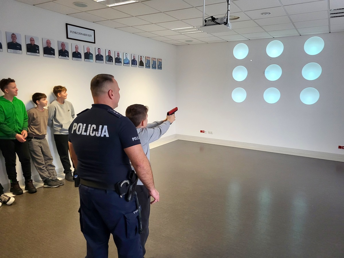 W tucholskiej Komendzie Powiatowej Policji odbyło się spotkanie, podczas którego funkcjonariusze zaprezentowali zainteresowanym swoje codzienne obowiązki oraz wyposażenie wykorzystywane w służbie. Uczestnicy mogli zwiedzić budynek komendy, w tym policyjny areszt i siłownię, a także sprawdzić swoje umiejętności na wirtualnej strzelnicy. Podczas wydarzenia policjanci z pionu kryminalnego i prewencji opowiadali o specyfice swojej pracy, odpowiadali na pytania oraz omawiali wykorzystywane narzędzia. W inicjatywę włączyli się również uczniowie klasy mundurowej z tucholskiego „Nowodworka”, którzy chętnie dzielili się doświadczeniami z młodszymi uczestnikami wydarzenia. Dla młodzieży ze szkół podstawowych była to okazja do poznania kulis służby w Policji oraz rozmowy z rówieśnikami realizującymi naukę w profilu mundurowym.