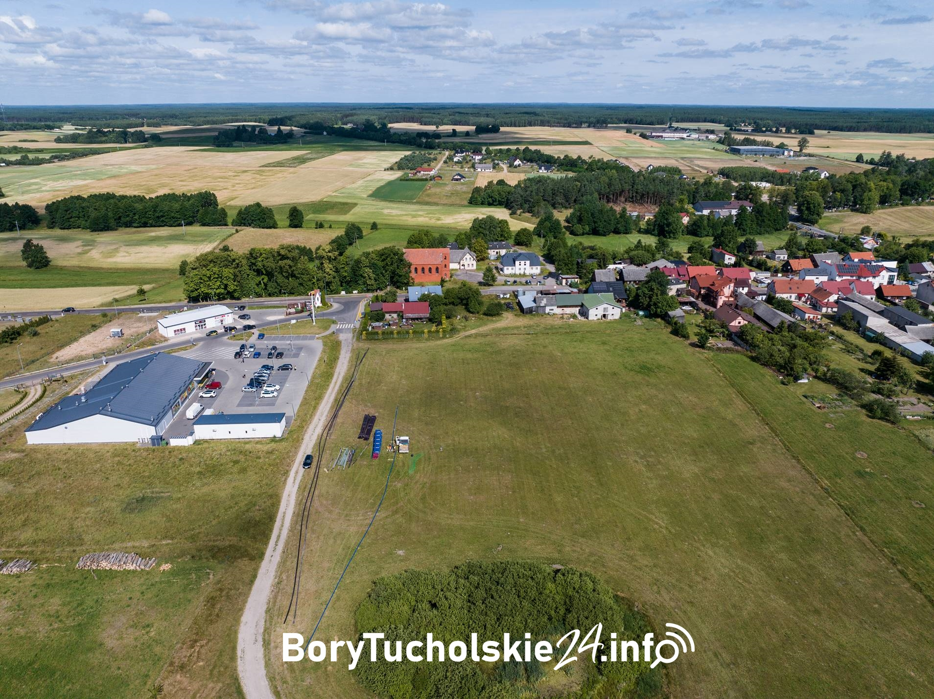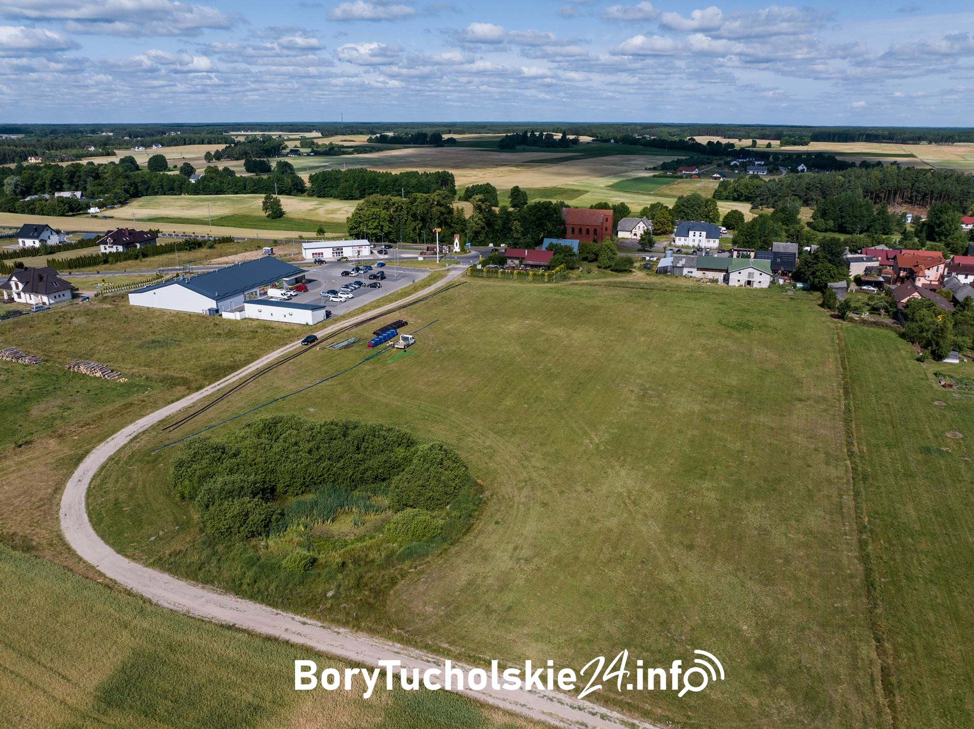 Wójt poinformował również, że na tym terenie rozpoczęto już inwestycję drogową. W ramach zadania powstanie około 300 metrów nowej drogi, wyposażonej w kanalizację deszczową, oświetlenie uliczne oraz chodniki. Środki finansowe na realizację przedsięwzięcia zostały wcześniej pozyskane, prace rozpoczęły się w 2025 roku, a ich zakończenie planowane jest w tym roku. Inwestycję realizuje firma Solo Duo.