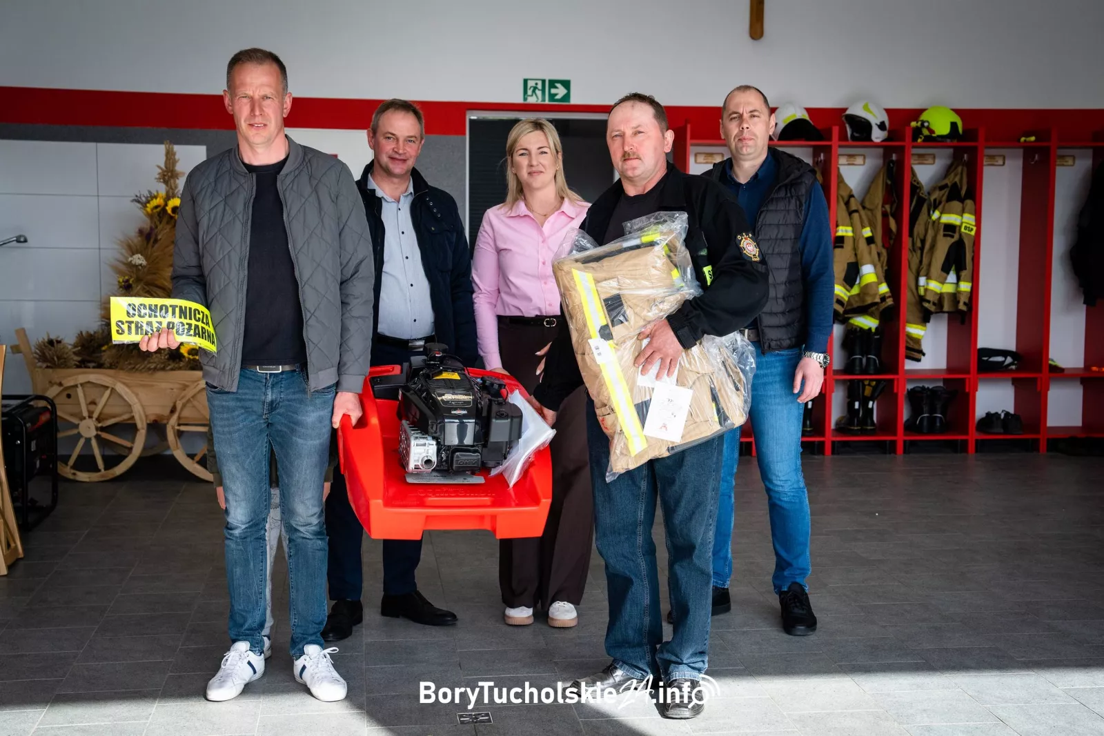 Pompa pływająca i kombinezon ochronny Nomex – to nowe wyposażenie, które od soboty 25 kwietnia znajduje się w remizie w OSP w Kręgu. Sprzęt i odzież przekazali wójt gminy Śliwice Daniel Kożuch i wicewójt Katarzyna Daszkiewicz. Sprzęt odebrali prezes jednostki Mariusz Gornowicz i skarbnik Sebastian Daszek. Przy okazji przekazywania sprzętu remizę OSP w Kręgu odwiedził zastępca komendanta powiatowego PSP w Tucholi Łukasz Grugel.