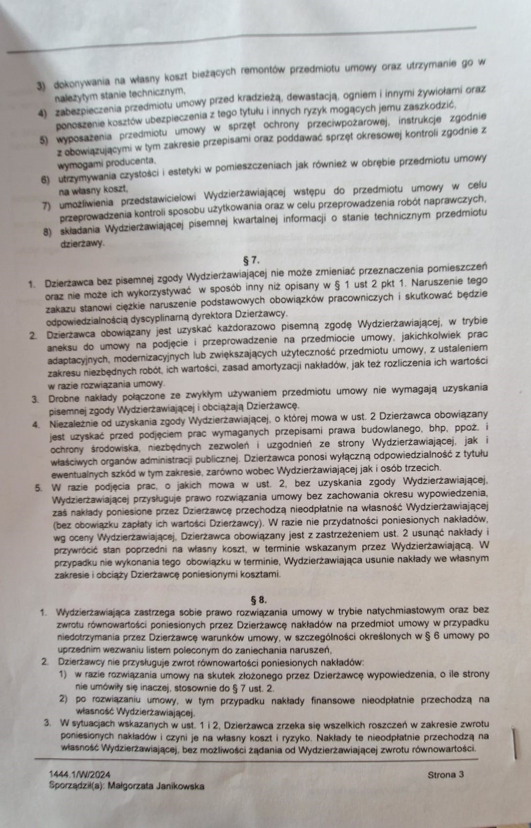 „Tymczasem uzyskanie takiej pisemnej zgody przez GCK, jako Dzierżawcę, jest wymogiem wyraźnie zapisanym w umowie dzierżawy (§ 7 ust. 1) z zaznaczeniem, że „naruszenie tego zakazu stanowi ciężkie naruszenie obowiązków pracowniczych i skutkować będzie odpowiedzialnością dyscyplinarną dyrektora Dzierżawcy” – czytamy dalej.
