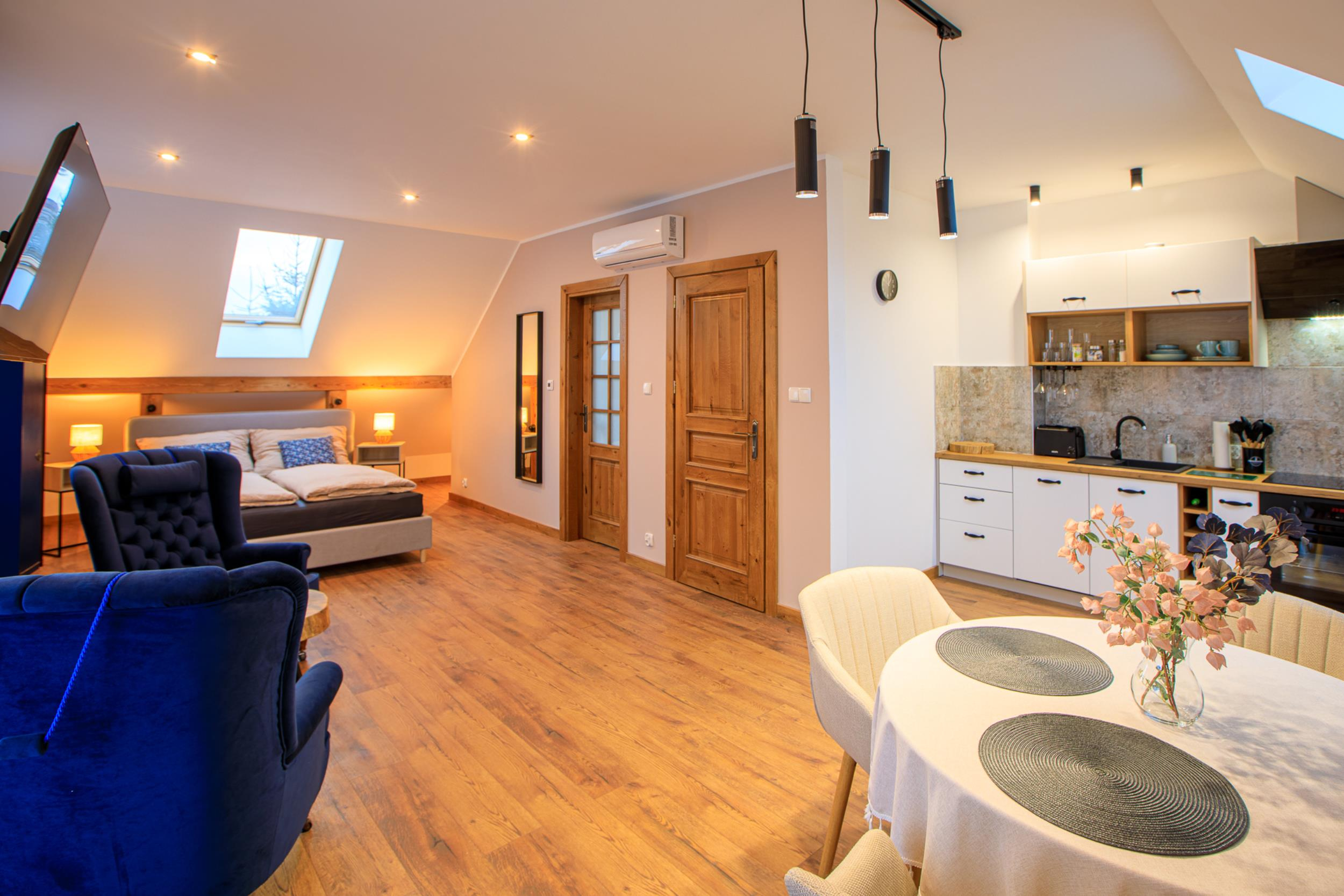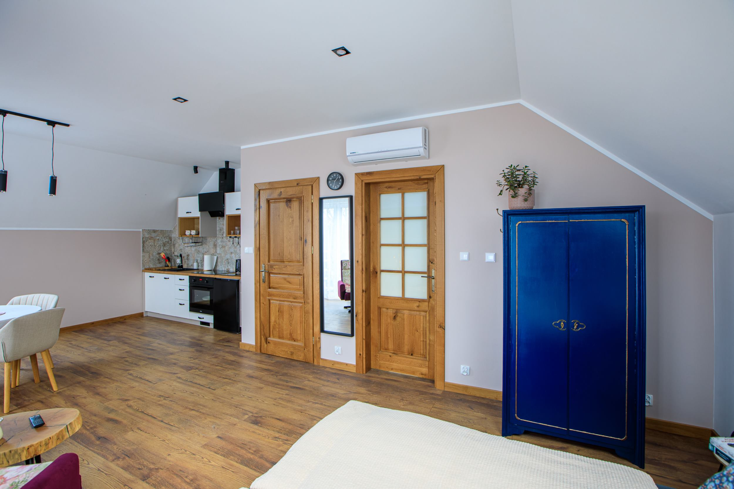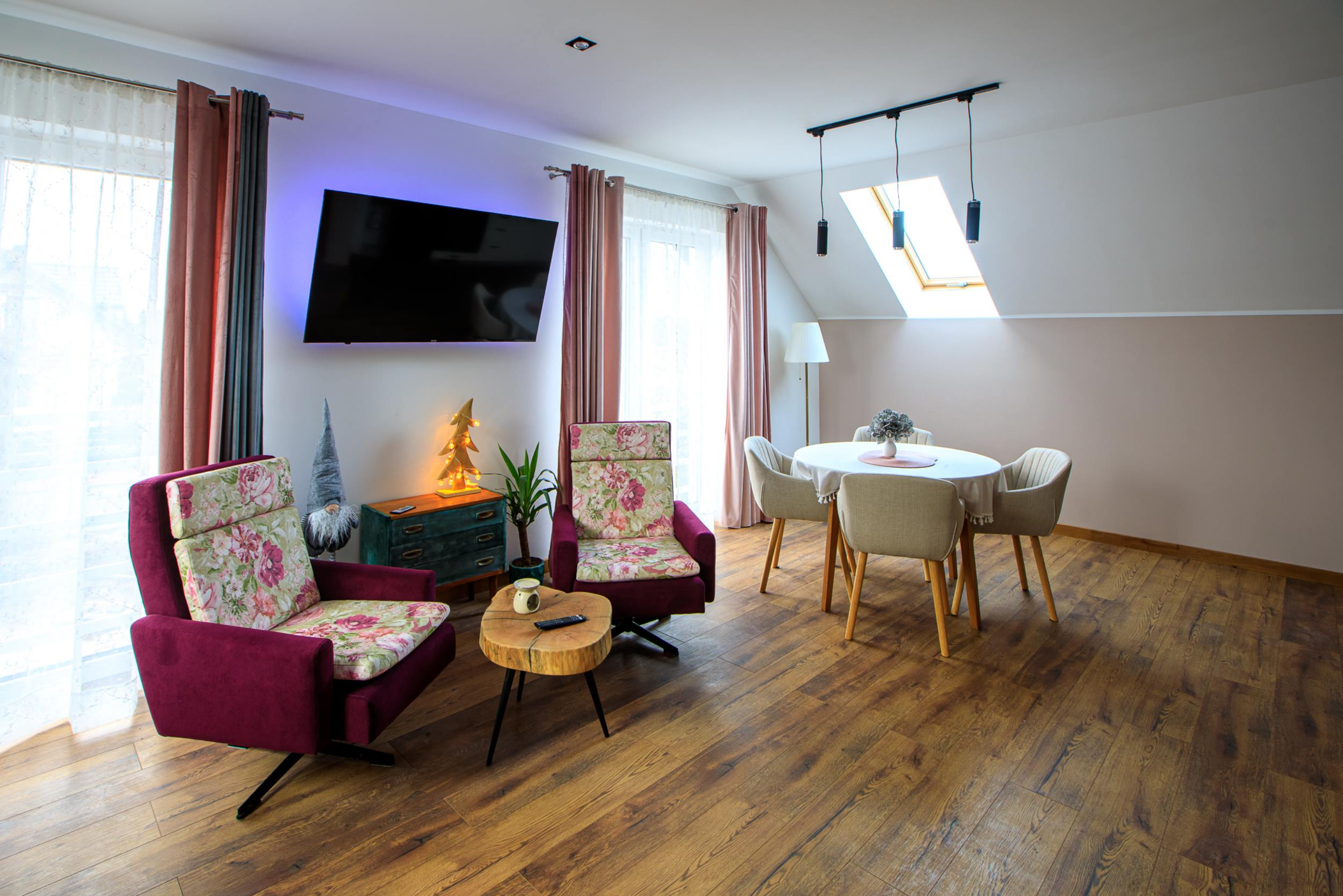 Przytulne apartamenty w Borach Tucholskich: 3 mieszkania po 50 m² i jedno 63 m² z dodatkową sypialnią. Stylowe wnętrza, aneks kuchenny, nowoczesna łazienka. Obiekt monitorowany, w otoczeniu lasów i jezior, idealny na relaks i odkrywanie uroków natury.
