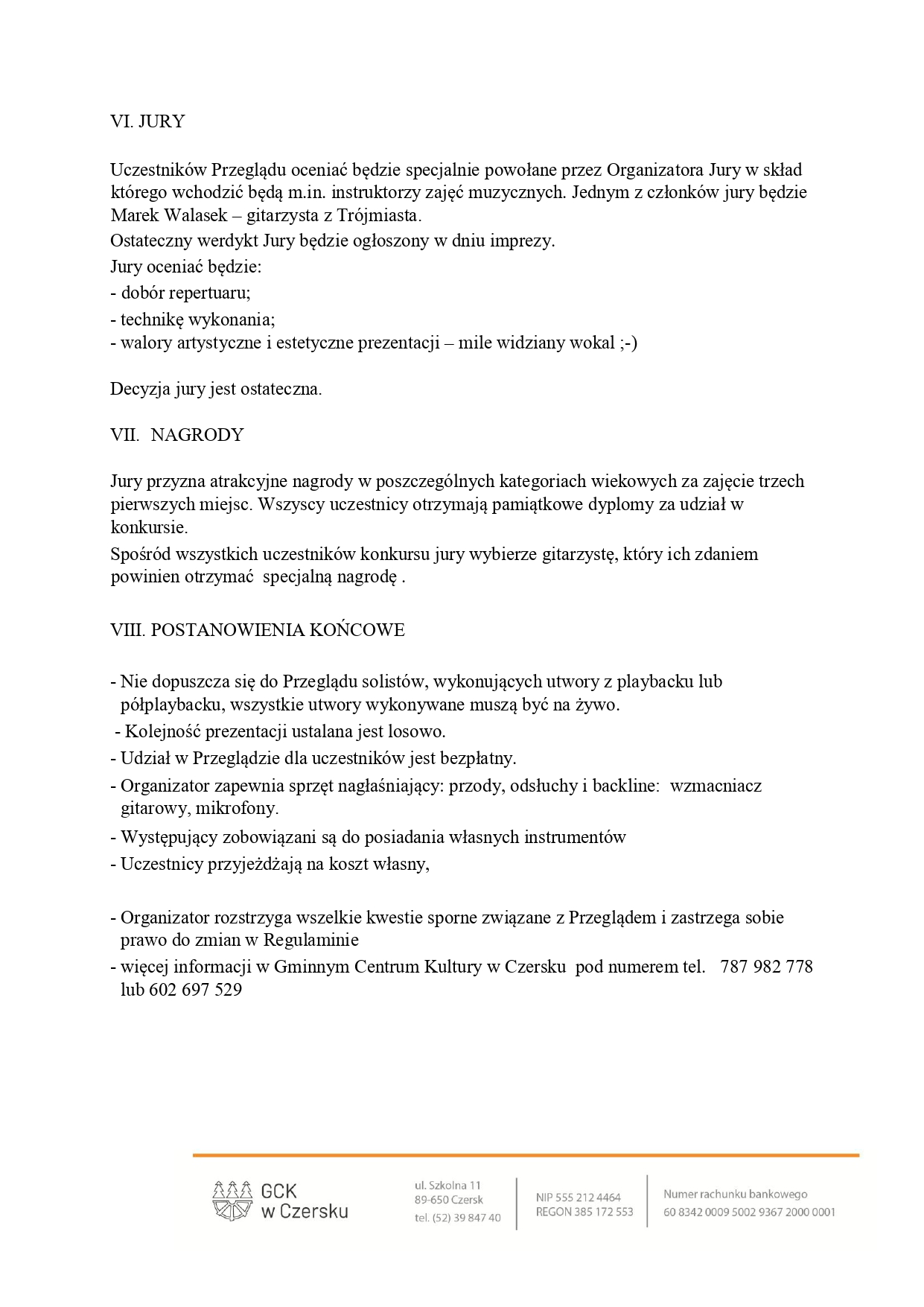 VII Przegląd Gitarzystów „Złota Gitara” w Czersku