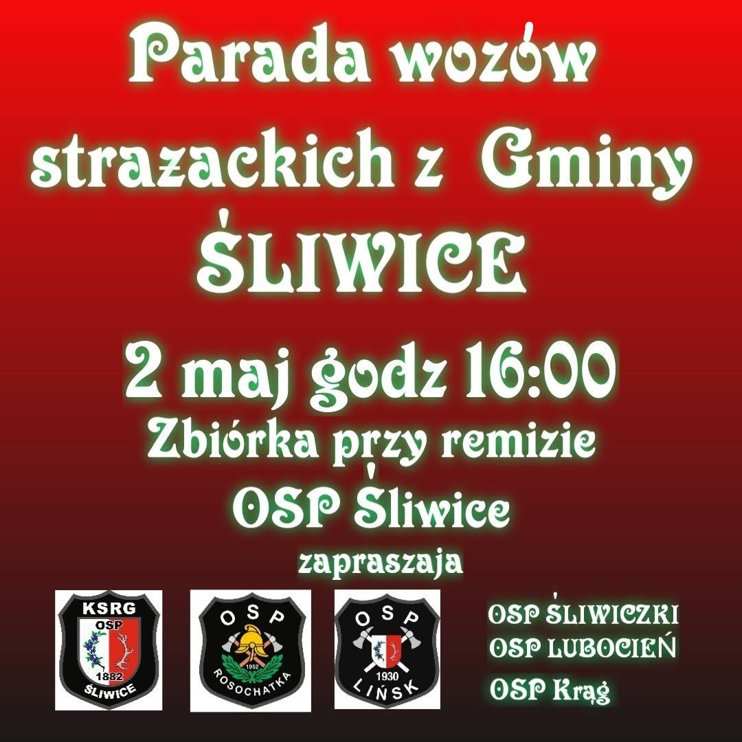 Strażacy z jednostek OSP gminy Śliwice zapraszają wszystkie dzieci wraz z opiekunami na wydarzenie – paradę wozów strażackich połączoną ze strażackim capstrzykiem. Odbędzie się ono w piątek, 2 maja, o godzinie 16:00 przy remizie OSP w Śliwicach. Podczas parady będzie możliwość przejazdu jednym z aż ośmiu wozów strażackich – oczywiście jako pasażer.
