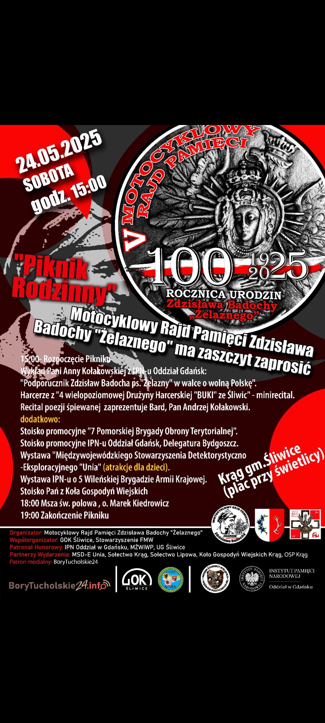 W sobotę, 24 maja o godzinie 15:00 odbędzie się Piknik Rodzinny zorganizowany przez Motocyklowy Rajd Pamięci Zdzisława Badochy „Żelaznego”.