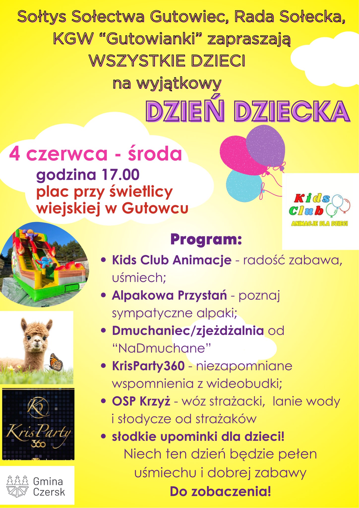 Sołtys sołectwa Gutowiec, rada sołecka oraz Koło Gospodyń Wiejskich „Gutowianki” zapraszają wszystkie dzieci na obchody Dnia Dziecka, które odbędą się 4 czerwca o godzinie 17:00 na placu przy Świetlicy Wiejskiej w Gutowcu.