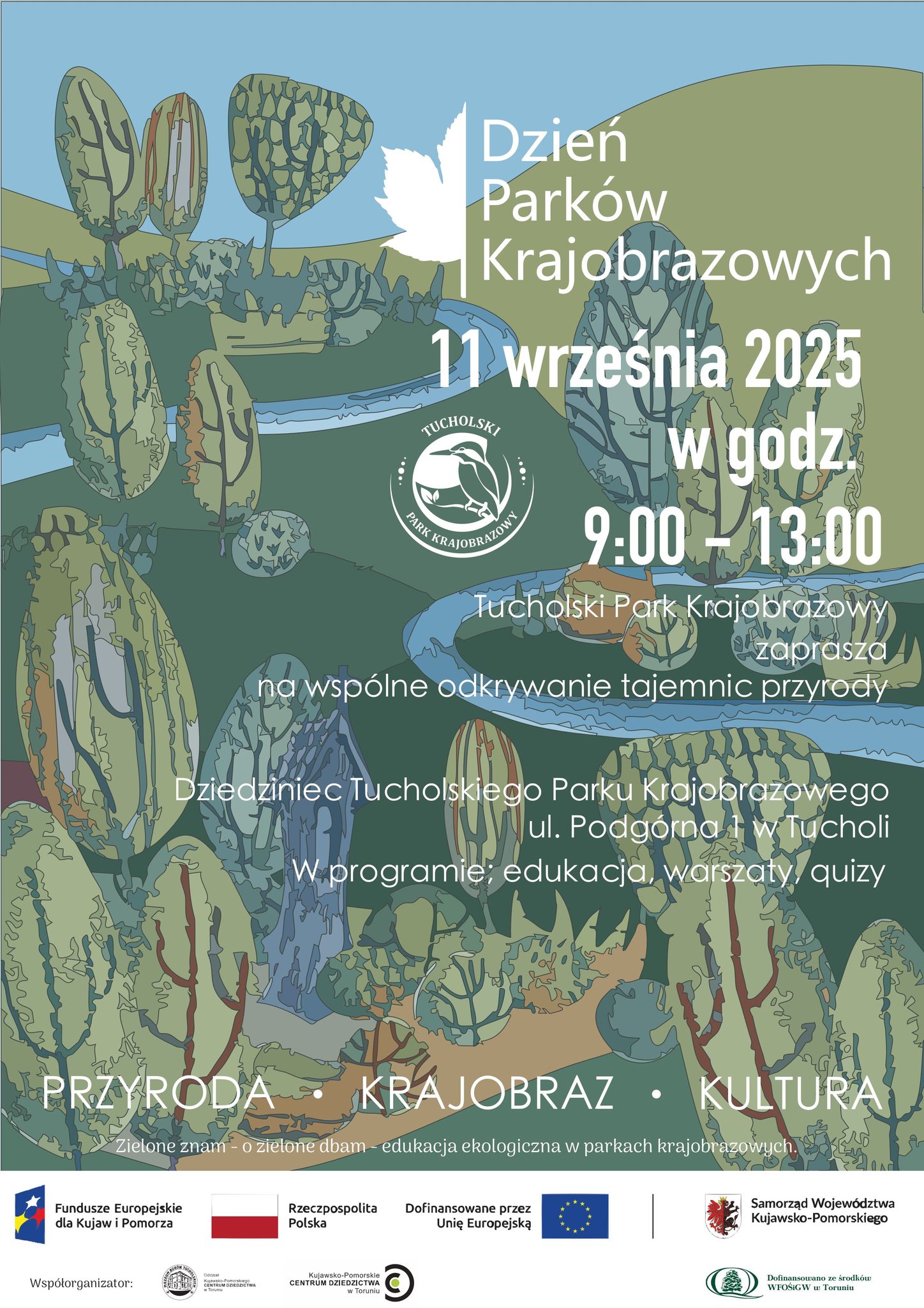 Tucholski Park Krajobrazowy zaprasza na obchody Dnia Parków Krajobrazowych, które odbędą się 11 września 2025 r. (czwartek) w godz. 9:00–13:00 na dziedzińcu siedziby TPK przy ul. Podgórnej 1 w Tucholi.