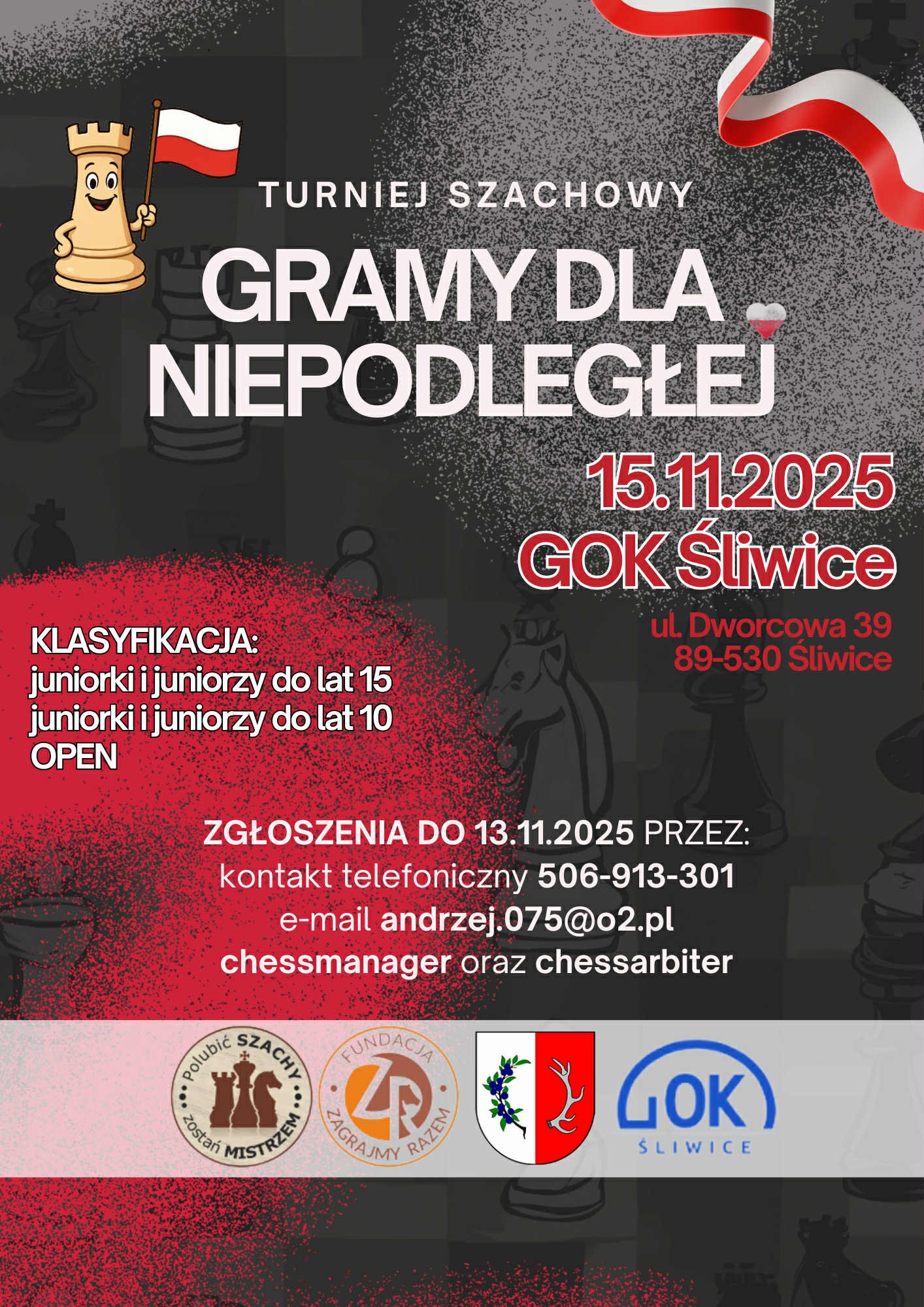 Regulamin Turnieju -" Gramy dla Niepodległej”- Gminny Ośrodek Kultury w Śliwicach – 15.11.2025 r.