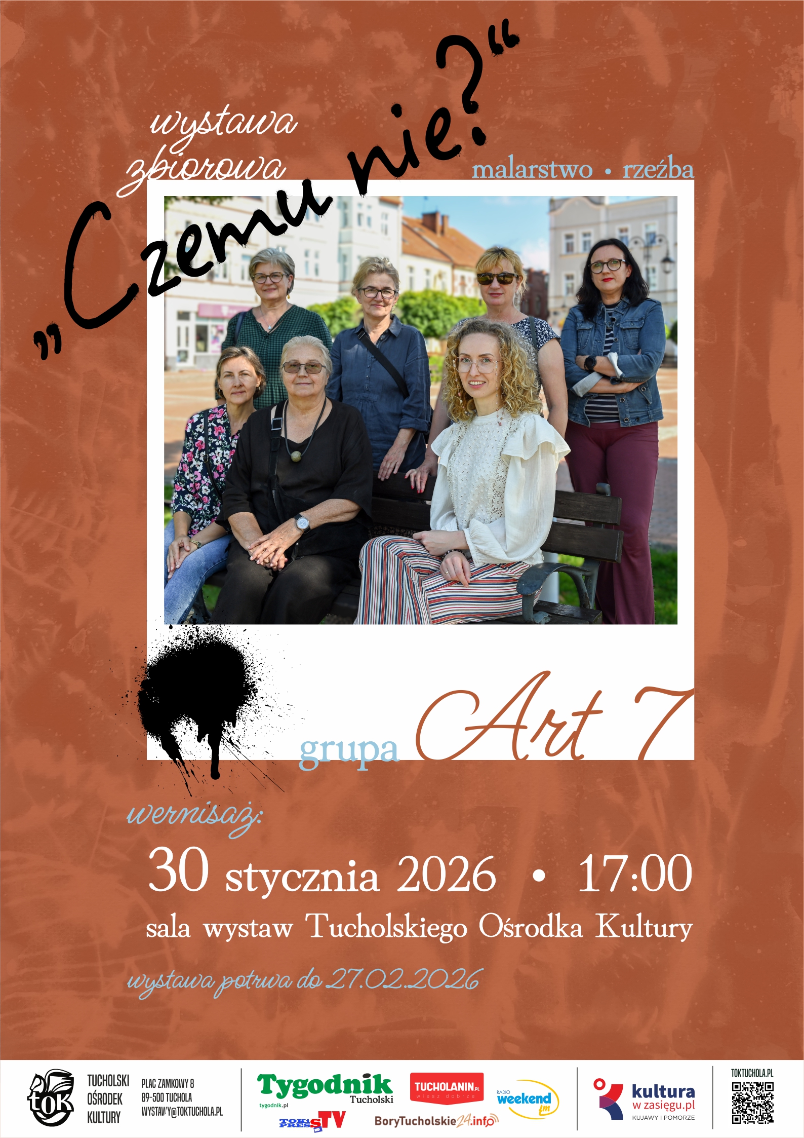 „Art 7" to artystki z Tucholi: Helena Kaczanowska, Wiktoria Timofiejewa, Małgorzata Obuchowska, Maria Łukaszewicz, Anna Narloch, Justyna Wojciechowska i Agnieszka Tajl. Połączyła nas przyjaźń i wspólne zamiłowanie do sztuki. Zapraszamy wszystkich do twórczego świata, który zatytułowałyśmy „Czemu nie?".