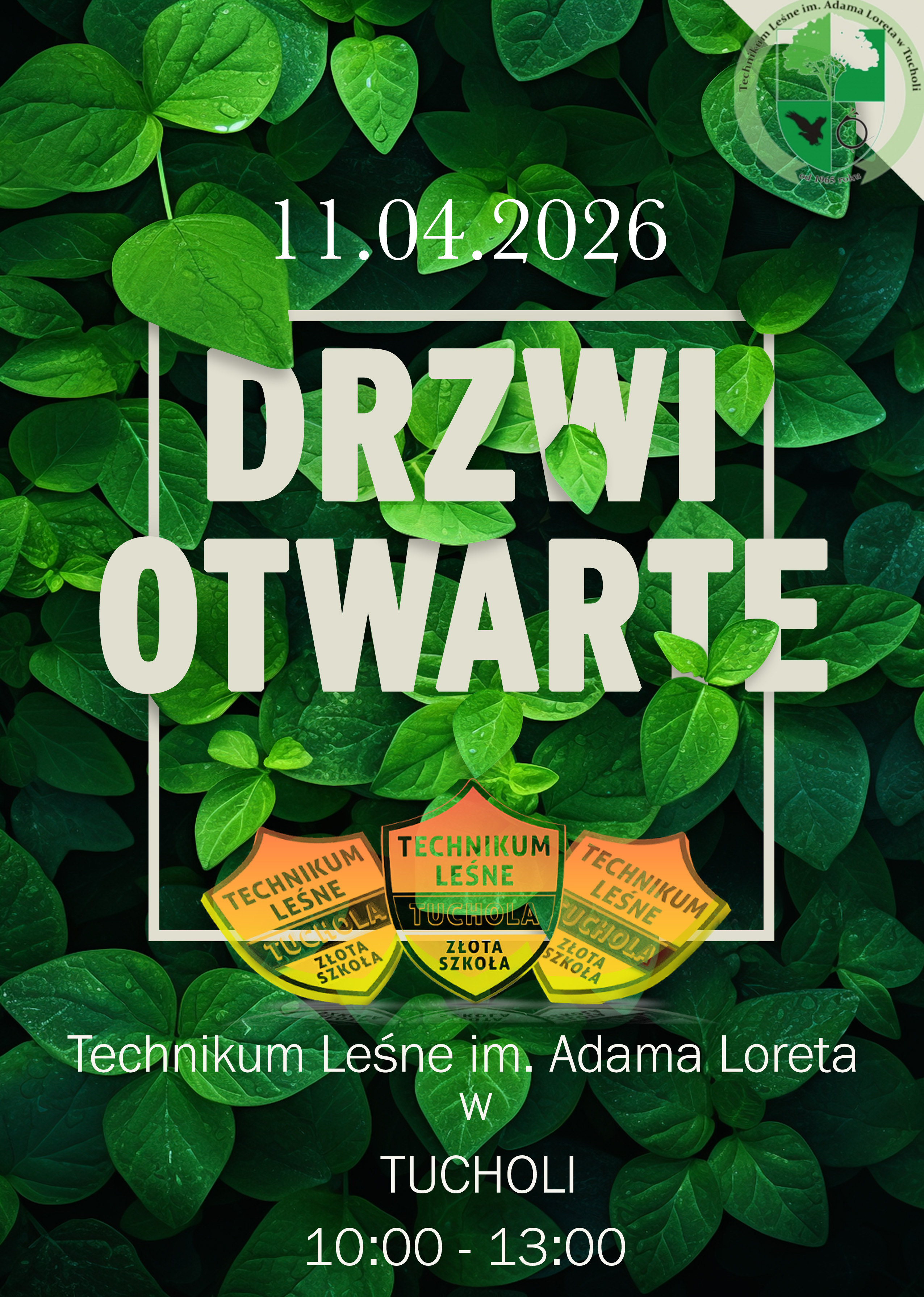 Serdecznie zapraszamy Państwa na tegoroczną edycję Drzwi Otwartych w Technikum Leśnym im. Adama Loreta w Tucholi, która odbędzie się w sobotę, 11 kwietnia 2026 r. w godz. 10:00 - 13:00. Jak co roku kandydaci do klas pierwszych technikum będą mieli możliwość zapoznania się z ofertą edukacyjną tucholskiego 'leśnika'. W programie wydarzenia przewidziano m.in.:
