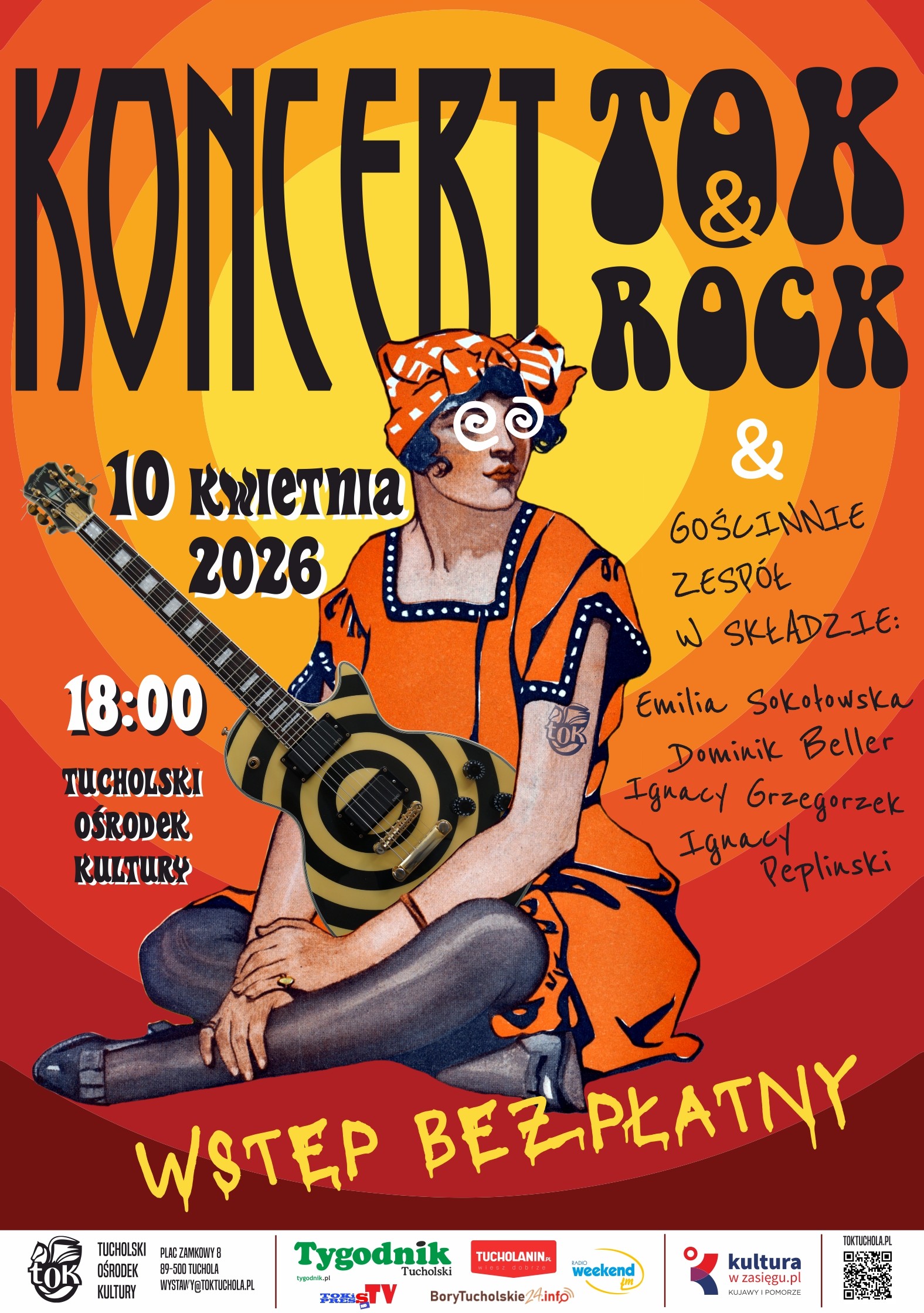 Już za tydzień, w piątek 10 kwietnia o godzinie 18:00 w sali widowiskowej Tucholski Ośrodek Kultury odbędzie się koncert zespołu TOK&ROCK. Tucholscy młodzi muzycy z każdym występem zdobywają coraz większe doświadczenie sceniczne, co wyraźnie słychać i widać podczas ich koncertów. Publiczność nie pozostaje obojętna - każdorazowo nagradza ich gromkimi brawami. To dobra okazja, by przekonać się o tym na żywo. Zespół TOK&ROCK, zgodnie ze swoją nazwą, zaprezentuje repertuar łączący rockowe brzmienia. Łączy je z dobrze znanymi, polskimi klasykami - każdy znajdzie coś dla siebie. Tego wieczoru gościnnie wystąpi również grupa w składzie: Emilia Sokołowska, Dominik Beller, Ignacy Grzegorzek oraz Ignacy Pepliński. W ich wykonaniu usłyszymy covery utworów z polskiej i zagranicznej sceny alternatywnej. Wstęp na wydarzenie jest bezpłatny.