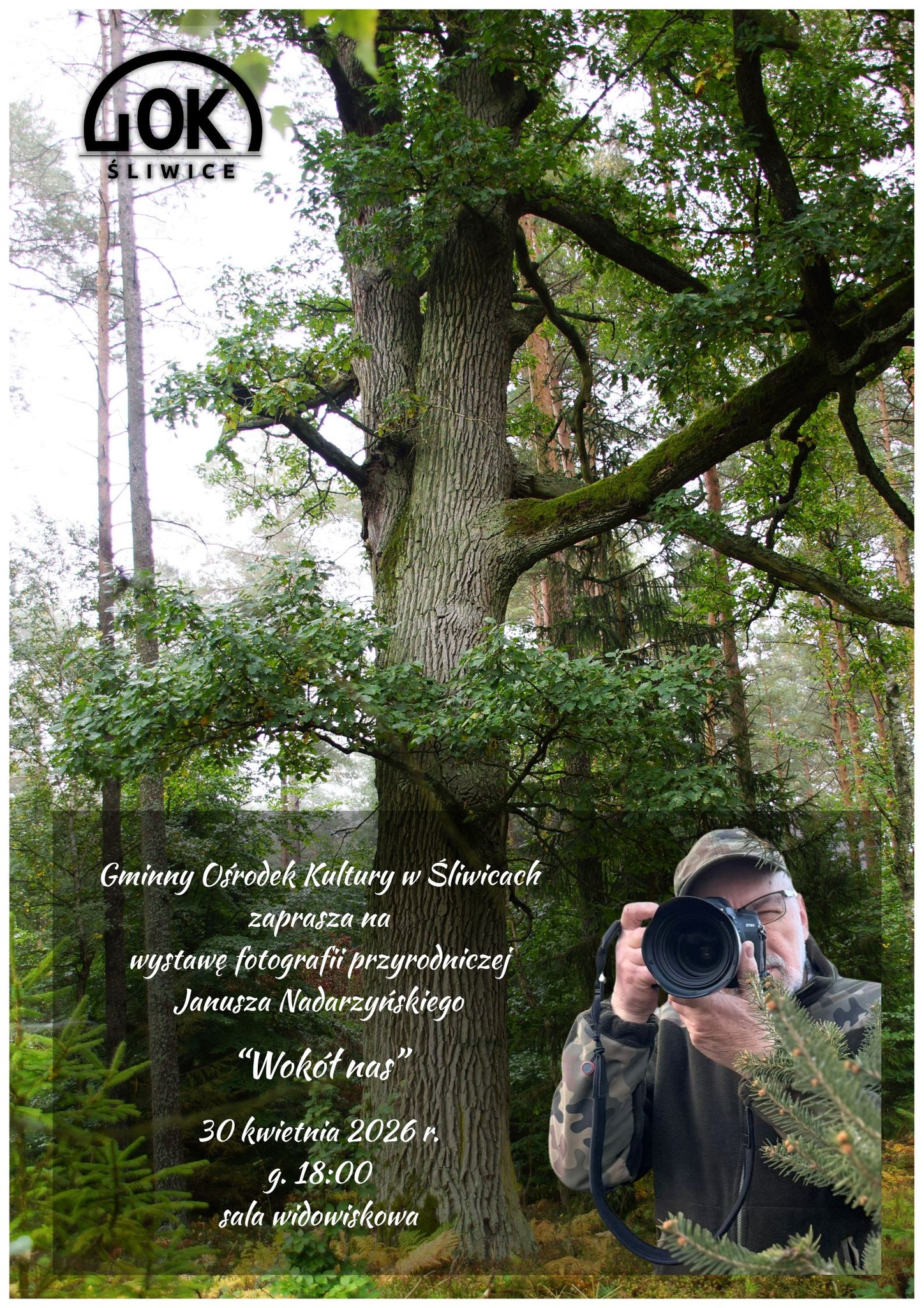 Zapraszamy na wyjątkowe wydarzenie - Wystawę Fotografii pana Janusza Nadarzyńskiego, która odbędzie się 30 kwietnia 2026r. w sali widowiskowej GOK Śliwice. Rozpoczęcie o godz. 18:00.