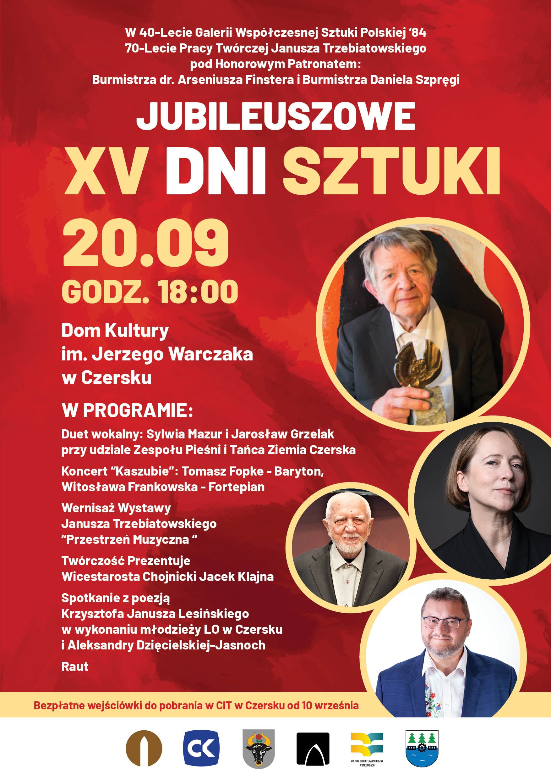 Z tej okazji, w Domu Kultury im. Jerzego Warczaka w Czersku, odbędzie się uroczysty wernisaż wystawy Janusza Trzebiatowskiego "Przestrzeń Muzyczna", twórczość przedstawi wicestarosta chojnicki Jacek Klajna. Ten podniosły wieczór uświetni także spotkanie z poezją oraz wyjątkowe występy artystyczne, a zwieńczeniem tego niezapomnianego dnia będzie raut, który pozwoli nam wspólnie celebrować piękno sztuki i kultury. Wydarzenie odbędzie się pod Honorowym Patronatem Burmistrza Chojnic dr. Arseniusza Finstera oraz Burmistrza Czerska Daniela Szpręgi, co jeszcze bardziej podkreśla doniosłość tego święta.